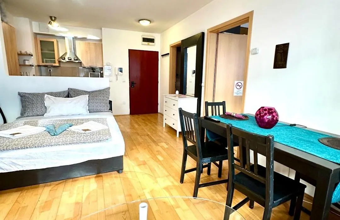 Dla wygody Gości apartament obejmuje wyposażoną kuchnię z czajnikami elektrycznymi i lodówką. Tylko 350 m od apartamentu do stacji metra Bajcsy-Zsilinszky Street.